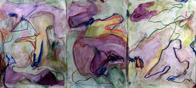 A wonderful journey… regarding the painting/s, I found them, (I saw the totality divided into three panels) comforting somehow, the predominant pink being a positive colour, although also potentially blood & water mixed,; the over lapping shapes and lines reminded me of cave drawings too (but then is that because of your poem!); it felt almost as though looking through a veil, looking into, through time, through water, not really sure, but intriguing..as is the title ‘Inner animal’