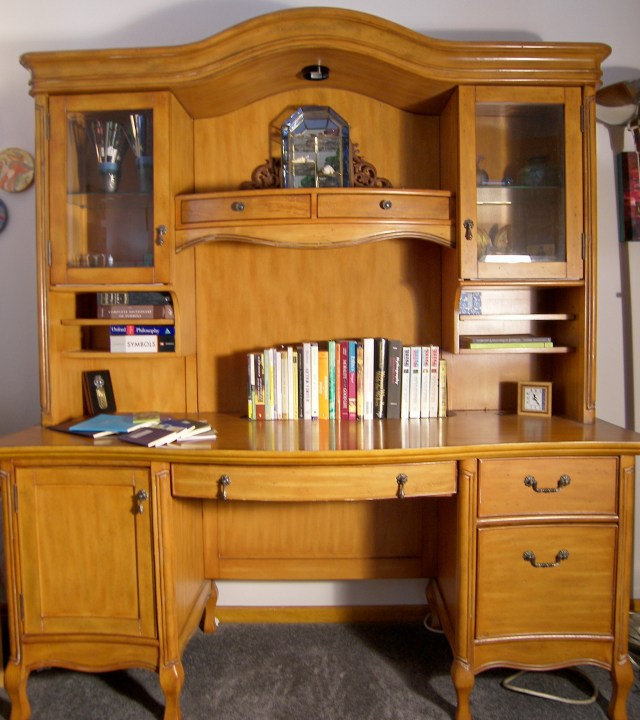 Thank you Anna! The profusion of arts revealed on your bookshelves is like the MRI that in 2003 finally revealed the mass in my left temporal lobe — probably congenital — that explained, at last, my seizure disorder. Your bookcase is a smoking gun for the range of your thought and poems. I think of all your “Chroma” websites as extrapolations of each of those shelves … the order of those shelves, too, somehow reflecting the ordering of those sites, and the “rage for order” that somehow holds the flukes of your poems (sometimes reading them I feel like I’m on mescaline and swimming). And you add to the one fixture of the writer — The Bookcase — that other, the Writing Desk, both as Relic and Altar (here) and the functional one (the one you didn’t show). When my dad dies, the only things I care to inherit from his house are some of his books and a monk’s table I’ve always used to study from on my visits to his house. And all those journals — do you keep a different one for each of the twelve modes of your expression? When i moved into this house 15 years ago, I lugged 30 boxes of books and papers; perhaps the main reason I care less to move than my wife is the thought of how many, many more boxes are now a part of that count … And finally, one thing these revelations of book-sanctums shows to me is how no collection can ever be complete — how I’ve lusted after titles I’ve seen on your shelves and Hedgewitch (that book on Chauvet looks, as they say in the parlance of porn, like a tiny hiney of a honey …) – Brendan